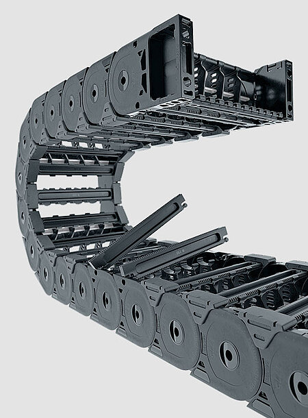 The extensive range of accessories allow cable carriers to be ideally adapted to your specific application. With the accessories for the cable carriers, the cable routing can be assembled from standard components to form a complete cable carrier system.