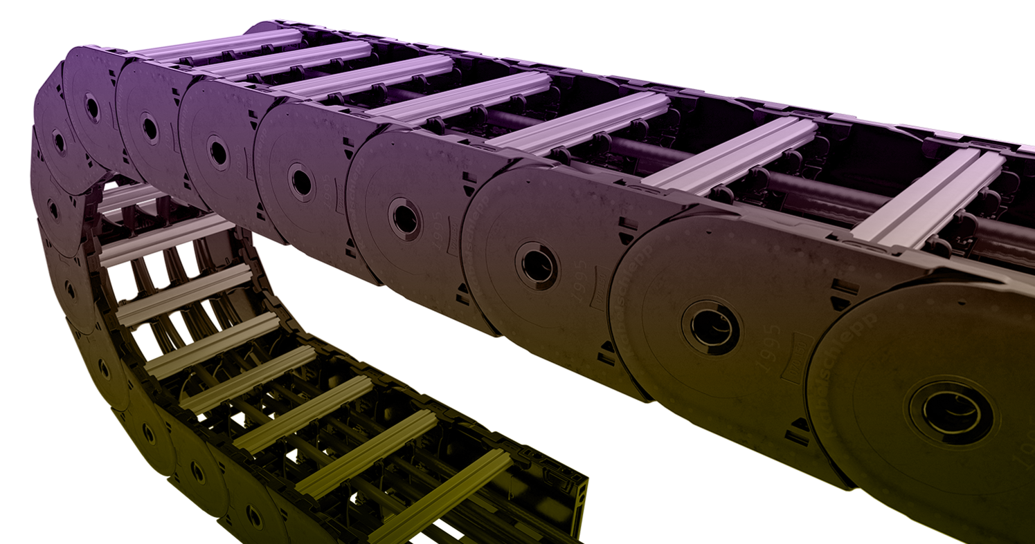 Cable carriers and chain-suitable cables – products and system solutions from KABELSCHLEPP® enhance your products sustainably. We are a specialist for standard applications and complex tasks at the same time with the experience of decades and hundreds of industries, i.e. Automotive, Robotics and Machine Tool – we are connected.
