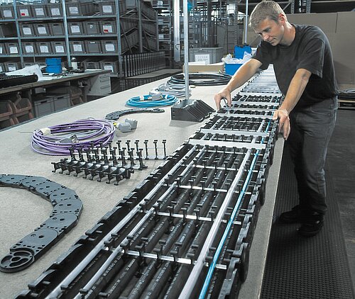 One order, one contact person, components optimally matched to each other, including the cable and hose carrier, the electrical cables, the hydraulic and pneumatic hoses and the connectors. You receive the complete TOTALTRAX® system in one delivery.
