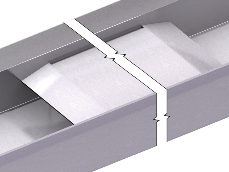 The unsupported connecting flanges are mounted at the joins, ensuring precise connection of the joint areas in addition to fixing the channel to the substructure.