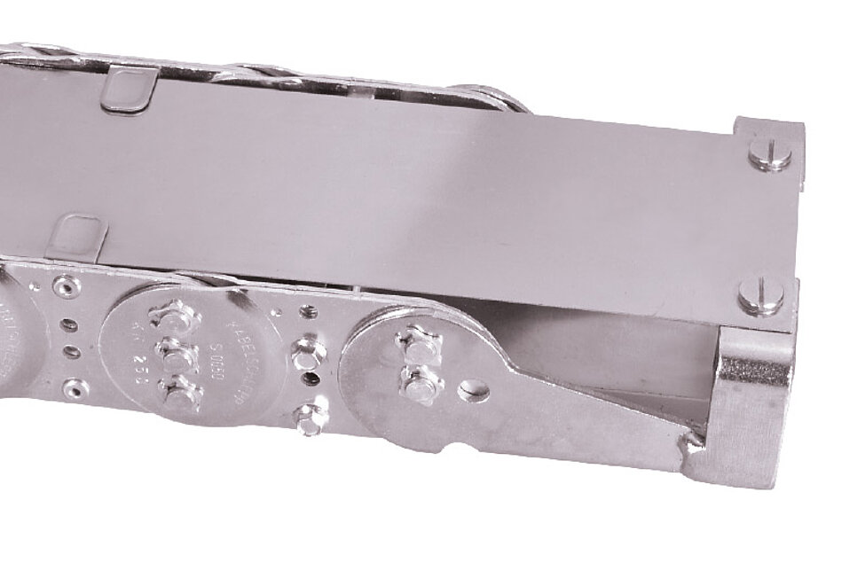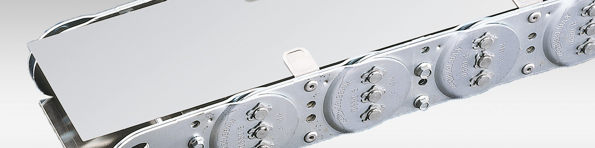 To protect the cables against flying sparks, radiated heat and small chips, steel band covers made from corrosionresistant and acid-resistant spring band steel are available.
