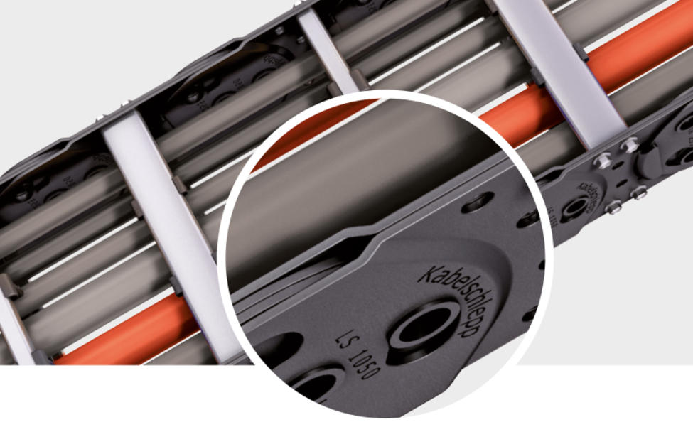 The hardened surface significantly increases the service life of the LS1050. Tests were carried out on cable carriers with identical designs.