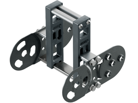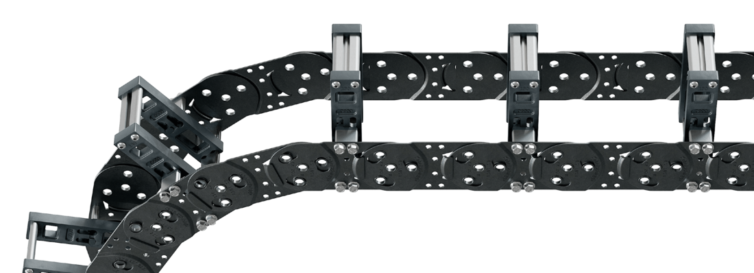 Aluminum profile bars with plastic mounting frame stays for guiding very large cable diameters.