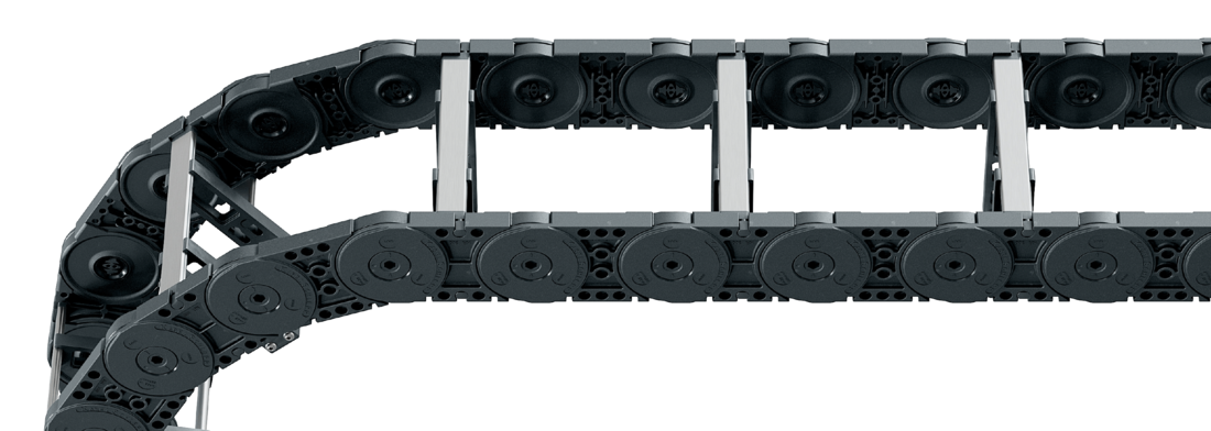 Aluminum profile bars with plastic mounting frame stays for guiding very large cable diameters.