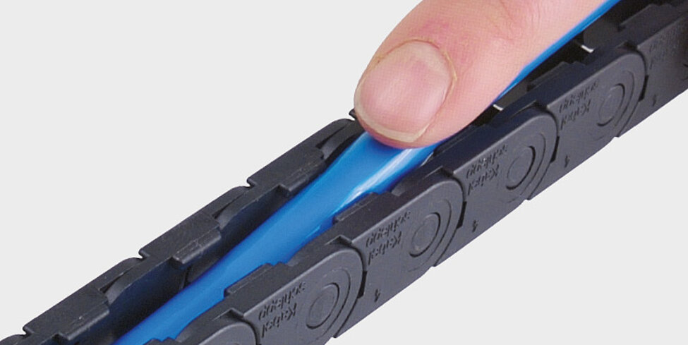 The slotted variant of the MONO 0202 allows fast and easy pressing in of cables without opening the cable carrier. That saves time and therefore money. It is particularly suitable for cables with pre-assembled connectors. Please contact us!