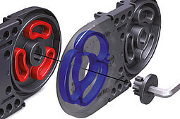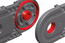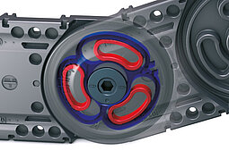 Minimized hinge wear owing to the “life extending 2 disc principle”
