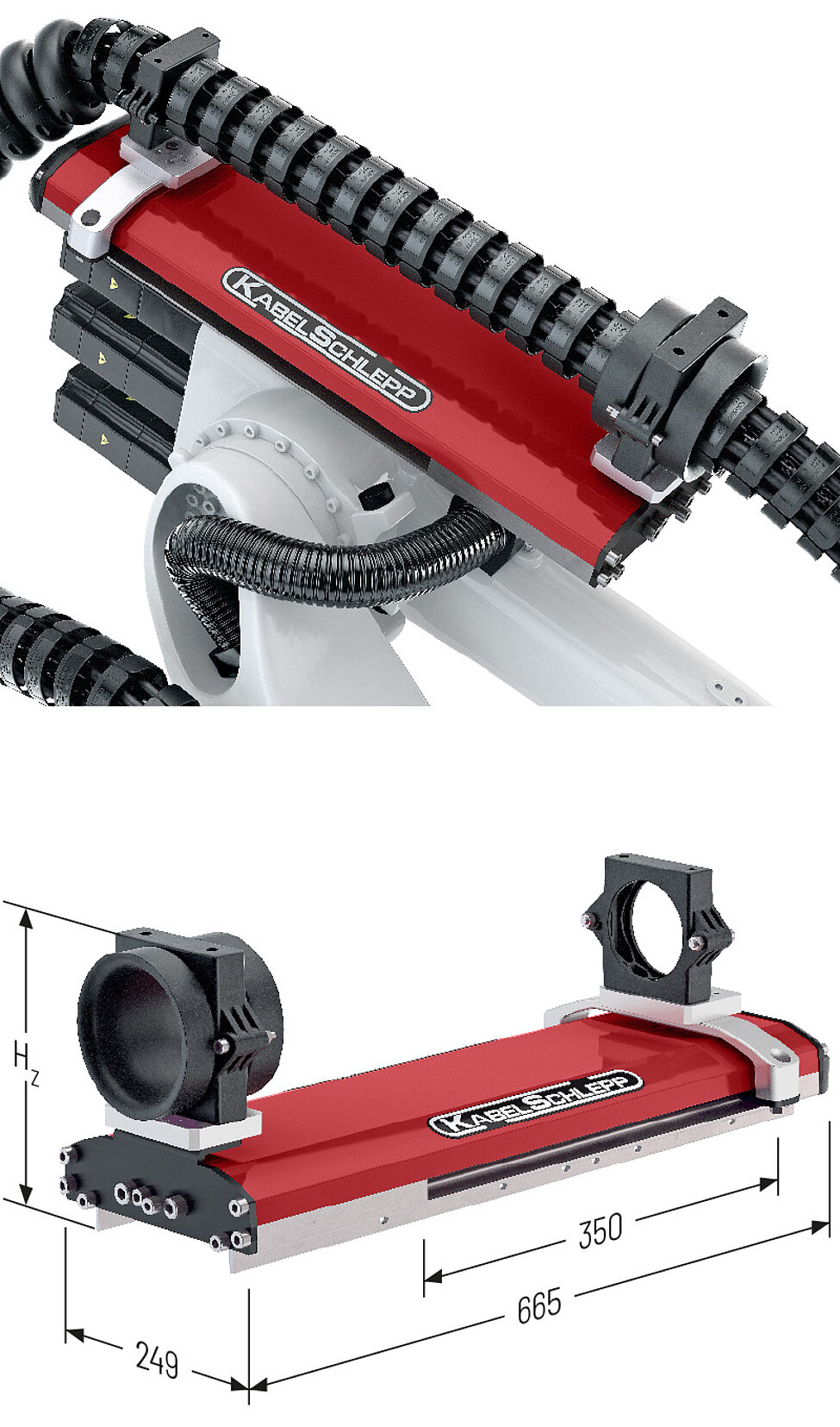 The forces are primarily transmitted by the cable carrier and not by cables and hoses.