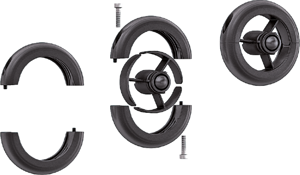 One additional degree of freedom on the attachments points. When mounted on a turntable, the quick-release bracket can rotate as well, to offer increased flexibility during complex robot movements.