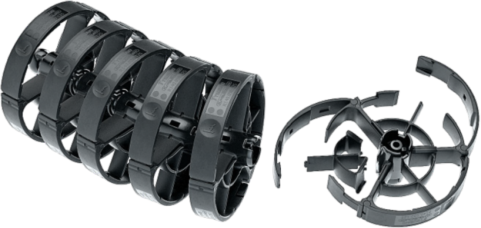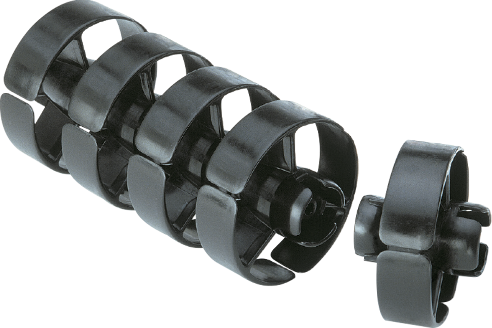 The basic structure of ROBOTRAX® consists of plastic links. These have spherical snap-on connections on both sides. This allows the individual links to be snapped together to form a cable carrier.