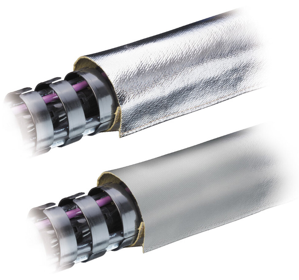 Heat shield: The heat shield made from aluminumcoated textile fibers protects the ROBOTRAX® system and inserted cables against flying sparks, weld spatter and radiated heat.
