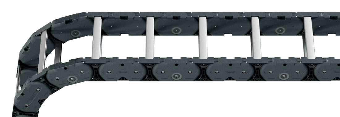 - Aluminum profile bars for heavy loads and large cable carrier widths. Easy threaded connection.