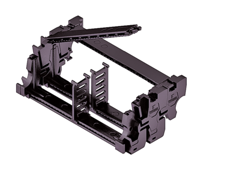 Fixable dividers are available for applications with lateral accelerations and for applications lying on the side. The arresting cams click into place in the locking grids in the crossbars (version B).