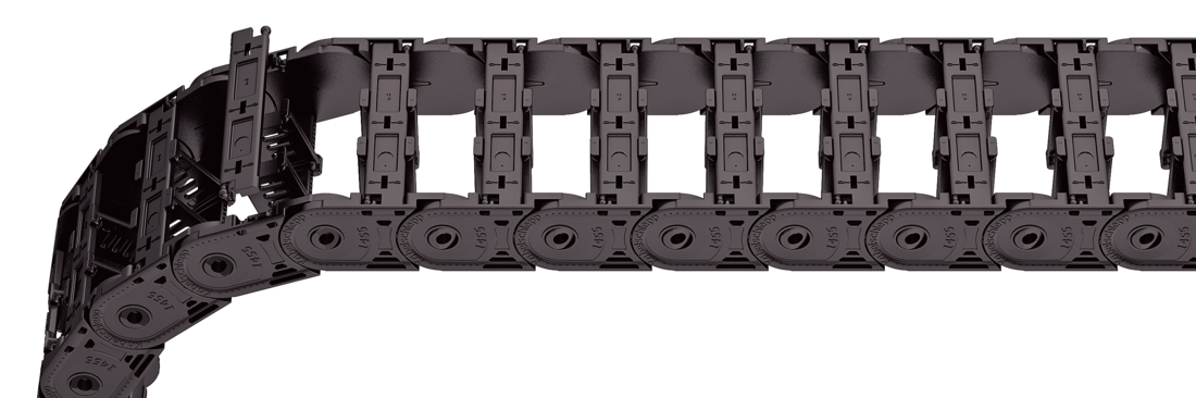 The divider system is mounted on every 2nd chain link as a standard. As a standard, dividers or the complete divider system (dividers with height separations) are movable in the cross section (version A).