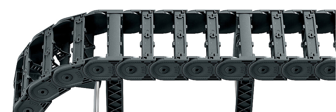 - Plastic stays and aluminum profile bars with plastic mounting frame stays for guiding very large cable diameters.