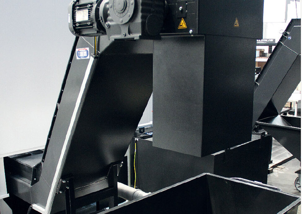 Depending on the application, hinged belt conveyors or scraper belt conveyors may be the right choice. Hinged belt conveyors are mainly used for wool or long chips as well as tufts of chips. Scraper belt conveyors are mainly used for small and short chips.