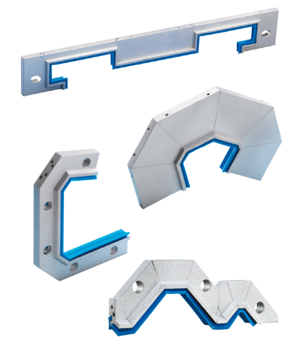 So-called “cast wipers” are wipers consisting of a piece of neoprene rubber vulcanised onto a steel support profile. They are produced in specially-manufactured injection moulds. Larger quantities are essential, as the tool costs must be offset by the number of parts produced.